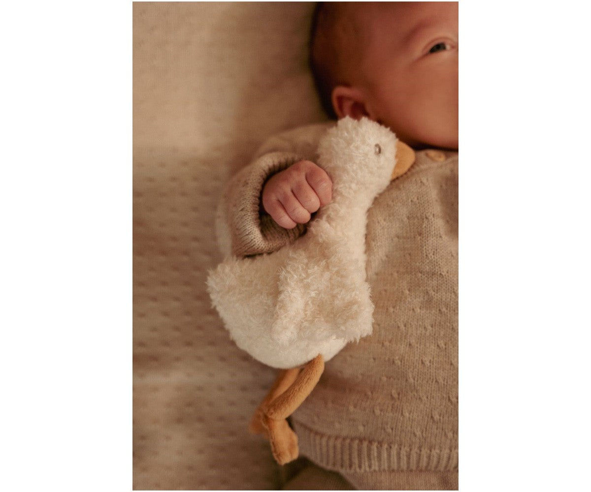 Para jugar, este set incluye un original sonajero de conejito y un peluche de oca listo para recibir abrazos y jugar sin descanso.