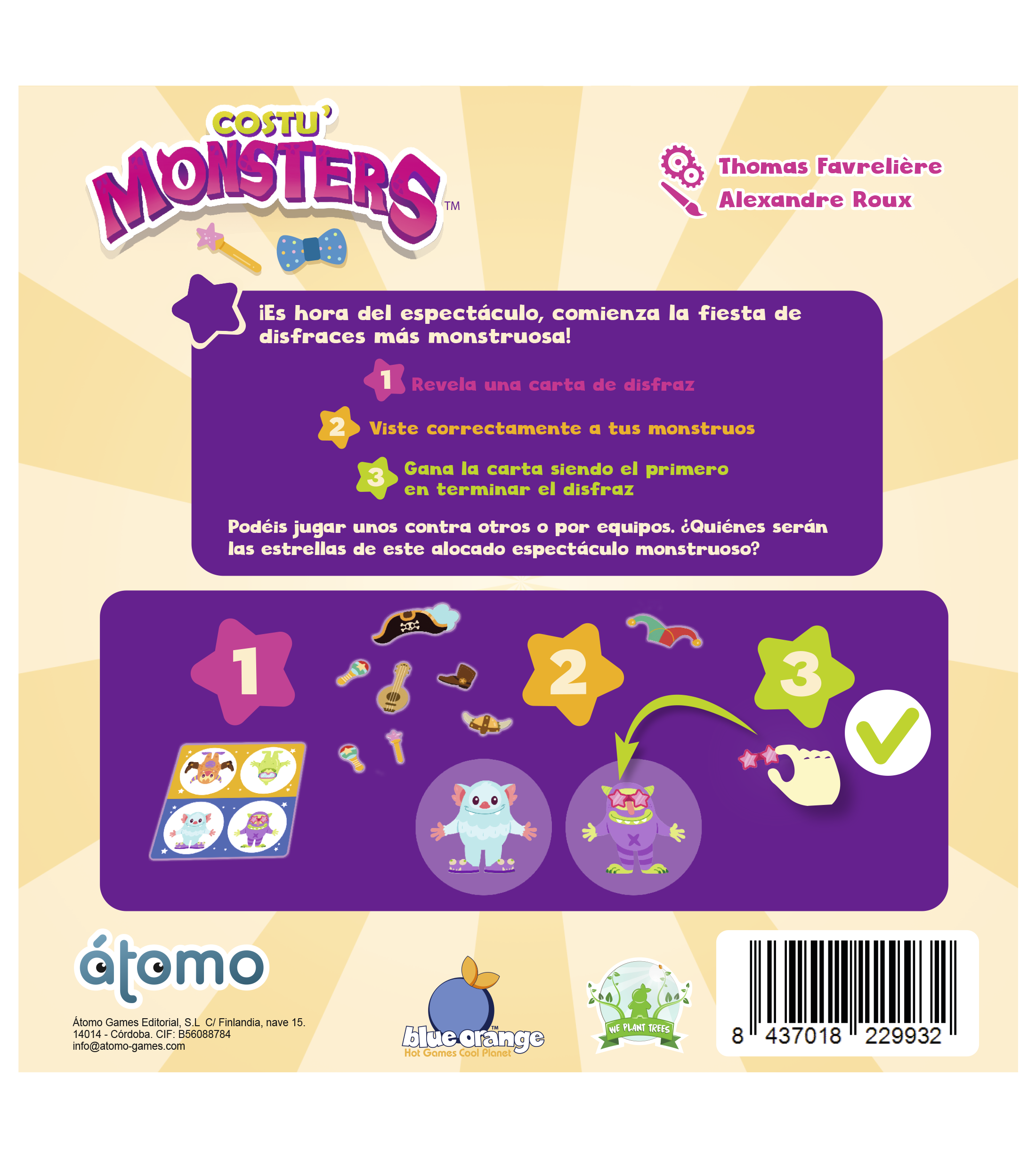 ¡Prepárate para una celebración monstruosa llena de velocidad y diversión! En Costu' Monsters, cada jugador recibe un adorable monstruo de acrílico al que deberá vestir con accesorios y ropajes antes que los demás.